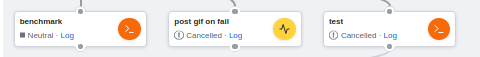 Actions benchmark, test, post gif on fail are defined to run in parallel; there is a subsequent step that needs actions test. If one of the parallel steps fails, I’d expected the remaining parallels step to finish. However, these steps get cancelled as in the screenshot above.