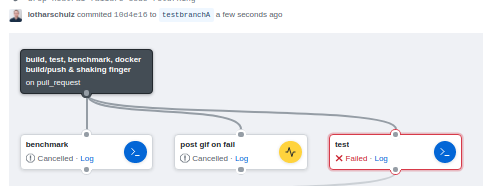 That causes the cancellation of the other actions: test & post git on fail.
